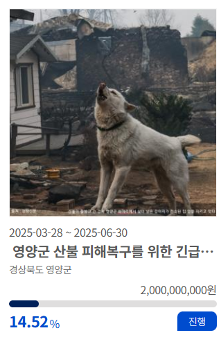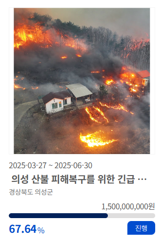 지금 바로 여러분이 응원하고 싶은 지역을 선택하고, 실질적인 기부를 통해 산불 피해 지역에 도움을 전해보시기 바랍니다.
