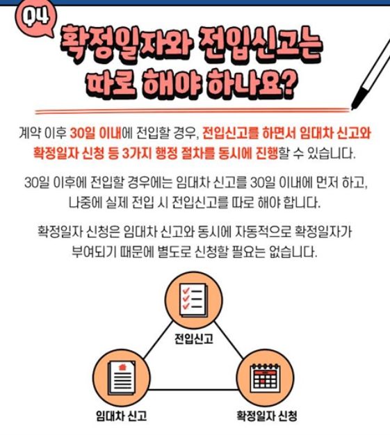 그러나 확정일자만 따로 받는다고 해서 전월세신고를 대신하는 것은 아니기 때문에 별도로 신고 절차를 진행해야 합니다.
