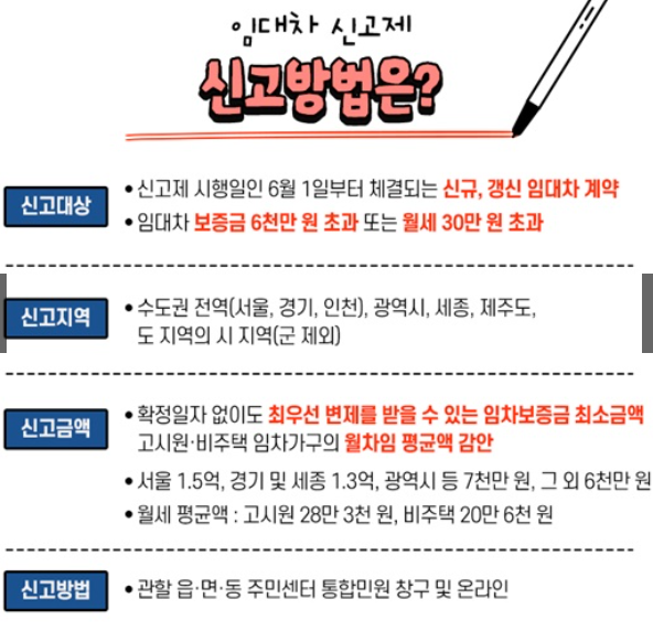 특히 수도권과 대도시의 경우 대부분의 전월세 계약이 이 기준을 초과하기 때문에 대부분의 세입자와 집주인이 신고 대상에 포함된다고 보셔야 합니다.