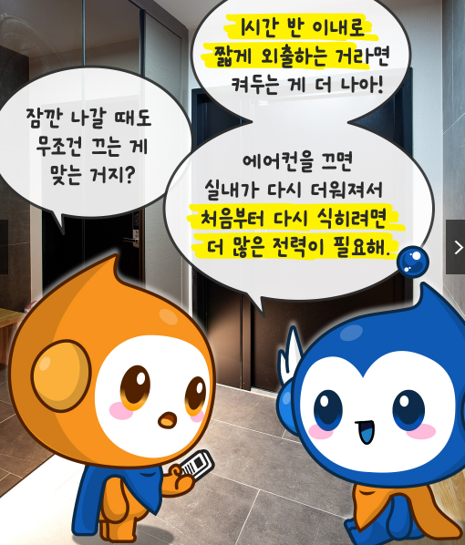 그다음 중요한 포인트는 짧은 외출 시 에어컨 사용법이에요.