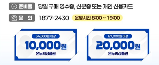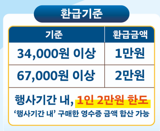 3만 4천 원 이상 6만 7천 원 미만 구매 시 → 1만 원 환급